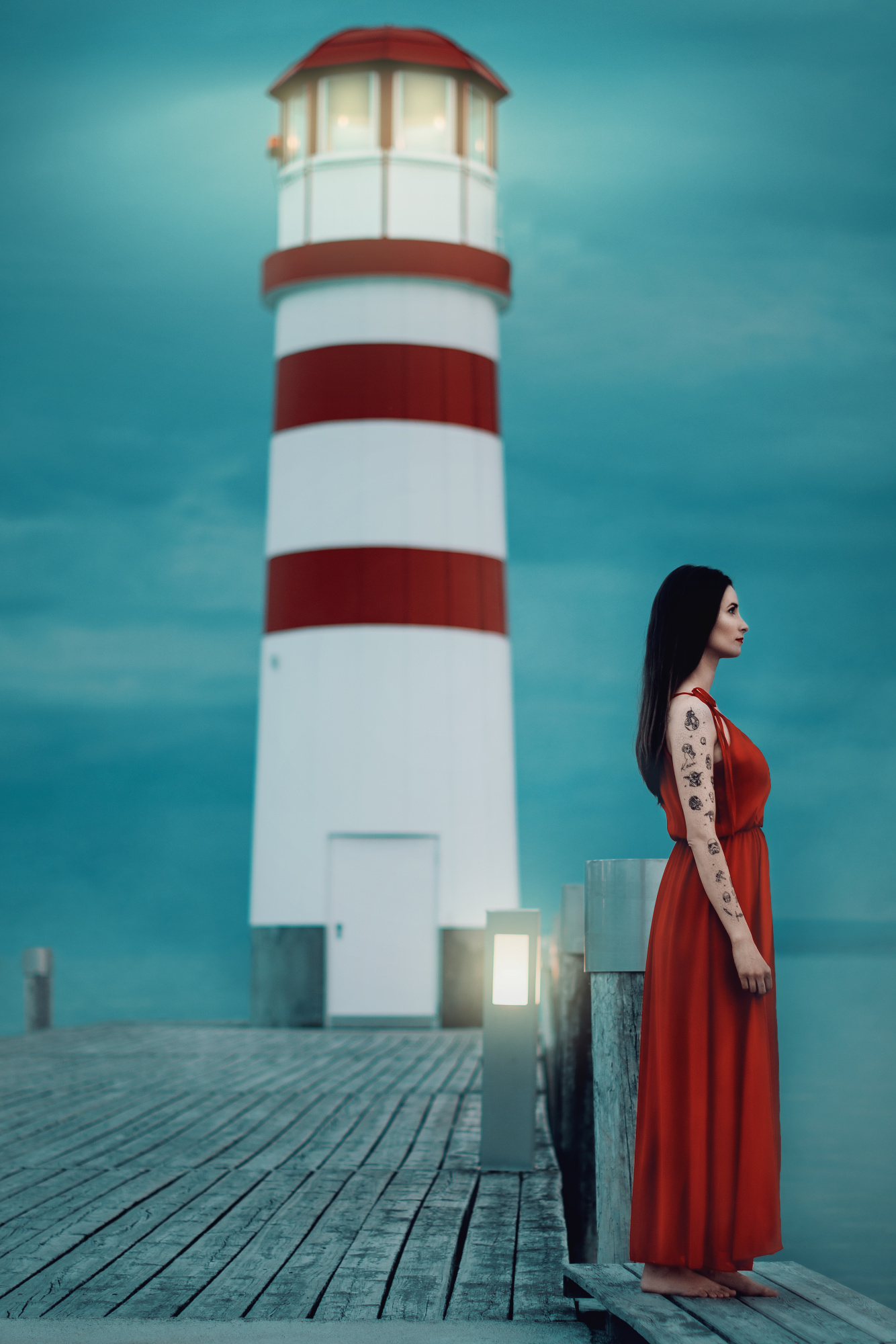 My all favourite photo is 'Woman in red dress'. It is my wife on the picture. I think it was taken in 2020. One day, I decided to go take pictures of this lighthouse, which is located in Podersdorf, Austria. My wife agreed, we packed our things, children and went. I forgot my daughter's bag who was two years old at the time, at home. So we had to go to a shopping centre in Hungary and buy her all the clothes and things she needed. (Laugh). Let me explain why in Hungary and not in Austria. Podersdorf is located not far from the Hungarian border. And accommodation in Hungary cost about 20% of the accommodation price compared to Austria. So we stayed in Hungary near the border and went to Austria to take pictures at sunset. Then we took pictures at sunrise the second day. I am aware that this photo is compositionally wrong for some of you, as she is looking out of the photo. But that's just how I felt, and that's how I wanted it. She is a woman who looks into the unknown. The viewer can only guess what she is doing there or why she is there. I love this photo.