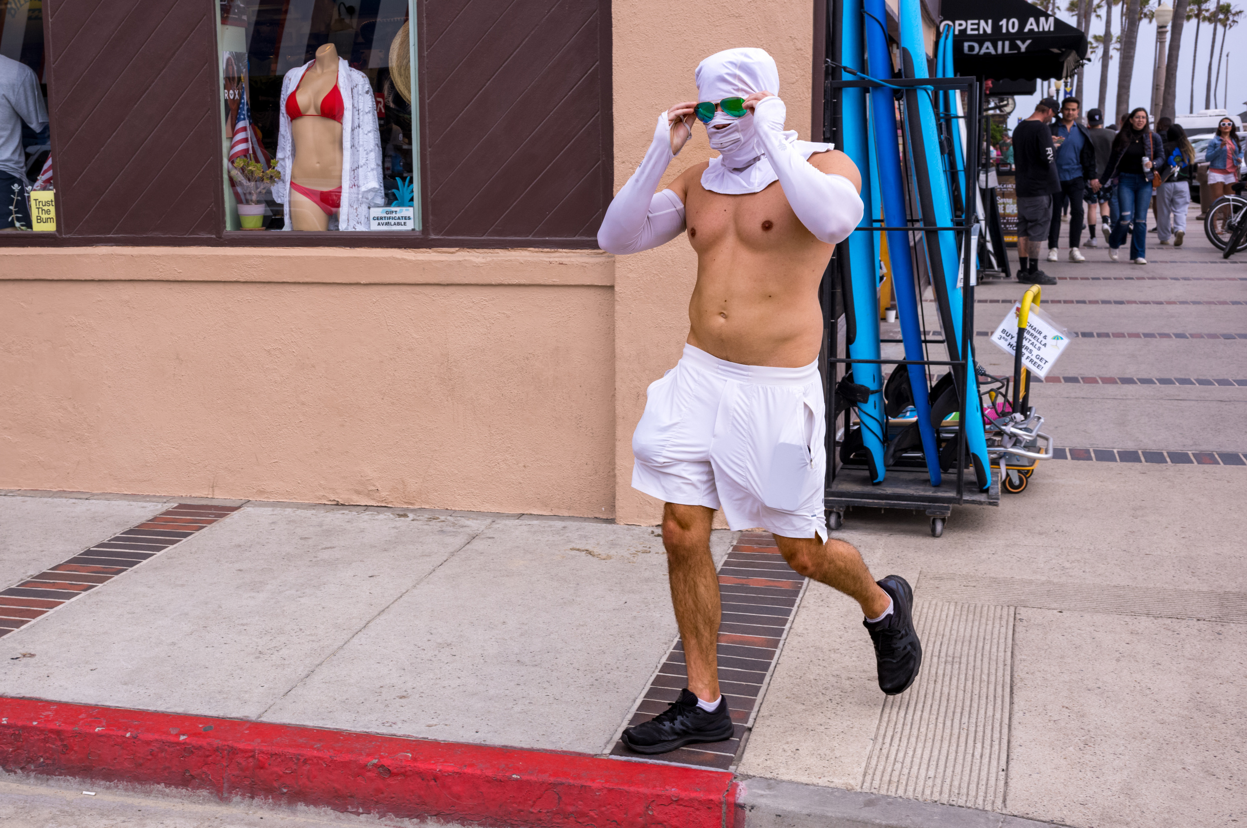 I mostly tend to create quirky and humorous photos. Perhaps this is because I was a street mime for 10 years and have a knack for spotting and exploiting situations such as this. Lately, my desire is to mix it up by using different angles and framing sizes, incorporating different lighting conditions, building layers, and filling up more of the frame. I am currently experimenting with street portraits, and trying to create more visually stunning photos.