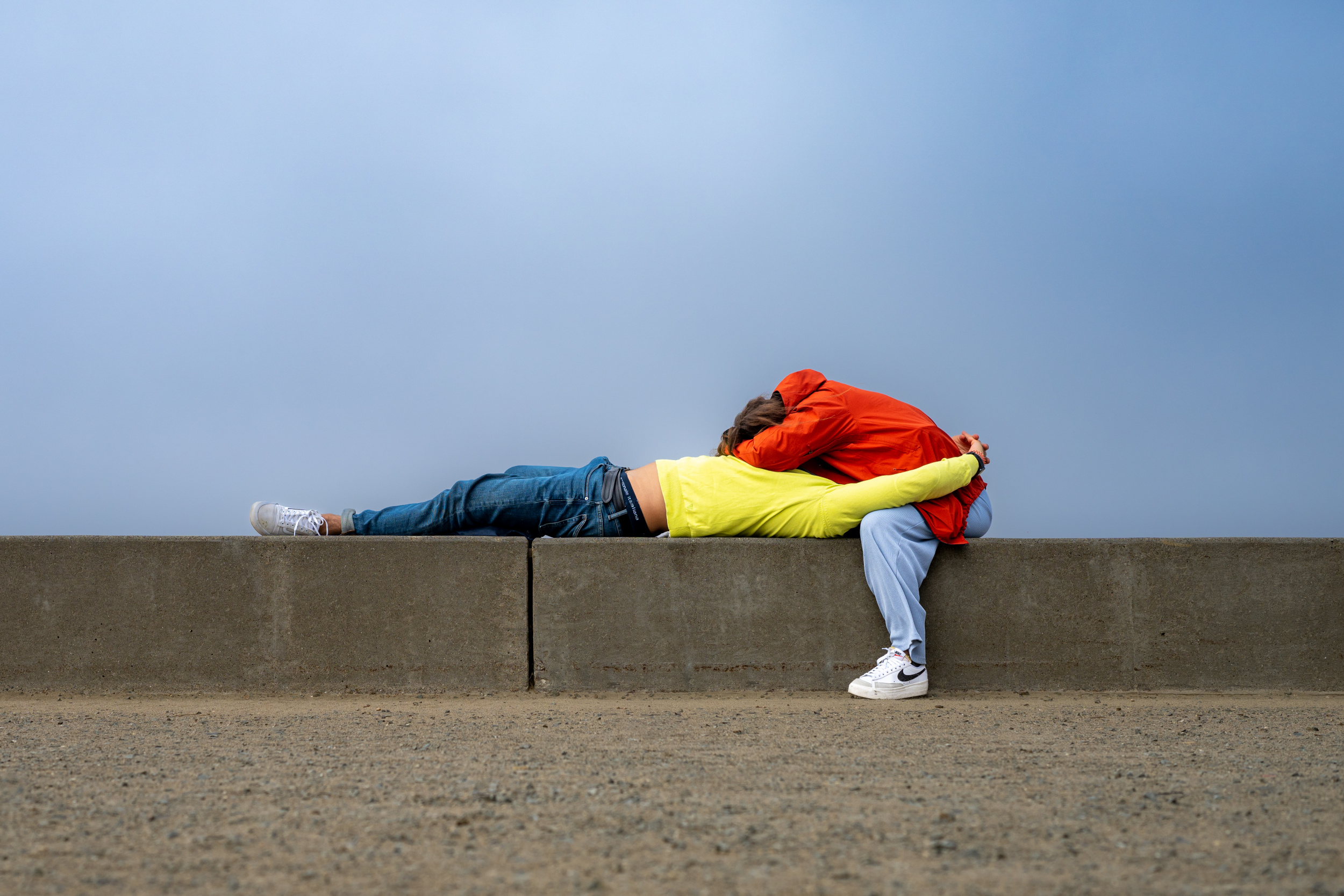 I am often tempted to create juxtapositions of people and backgrounds, such as murals and advertisements. To me, these sort of photos are fun to make but are also too cliche. Other cliches I tend to avoid are silhouettes, using objects to look like body parts, or taking photos of people who are jumping or diving into water.